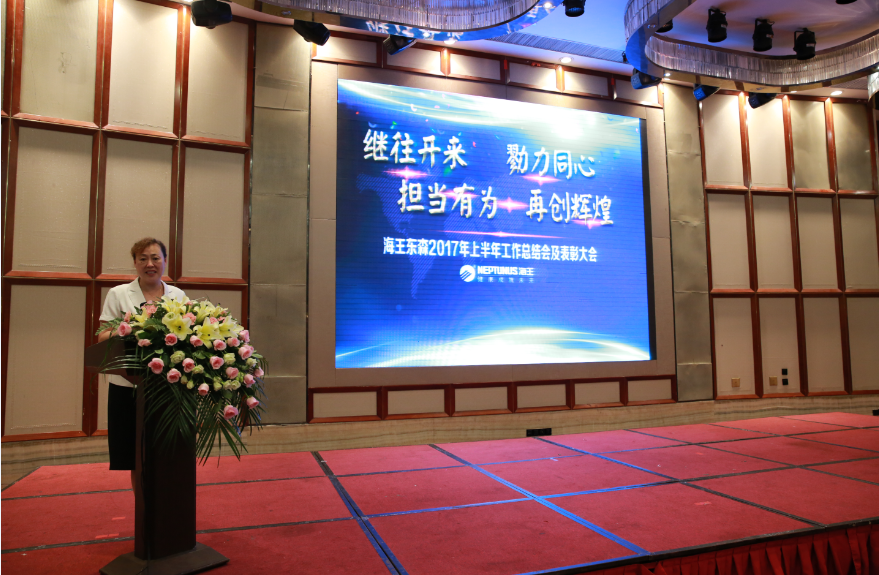 7月22日上午,海王集團河南東森醫(yī)藥有限公司在中泰豪生大酒店會議廳召開2017上半年工作總結(jié)會暨表彰大會,總經(jīng)理助理閆玉姣主持本次會議。