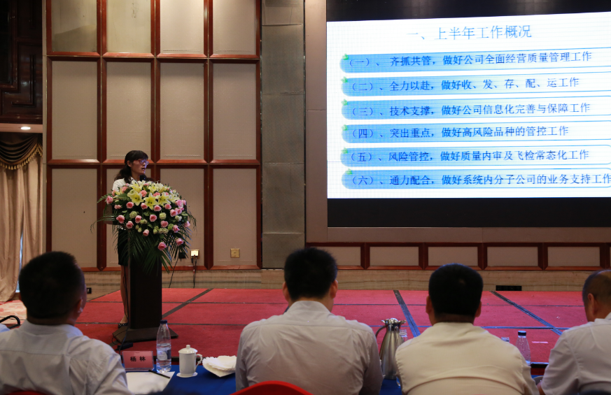 負責(zé)信息部、儲運部、質(zhì)管部的畢文艷副總經(jīng)理詳細講述了所負責(zé)各部門在日常工作的相互配合,為公司提供了堅實的后勤保障。下半年主要的工作任務(wù)是完成公司制定的年度銷售目標任務(wù),做好日常工作管理,打造常態(tài)化管控體系,提升公司抗風(fēng)險能力和水平,確保公司信息系統(tǒng)正常、高效運轉(zhuǎn)。