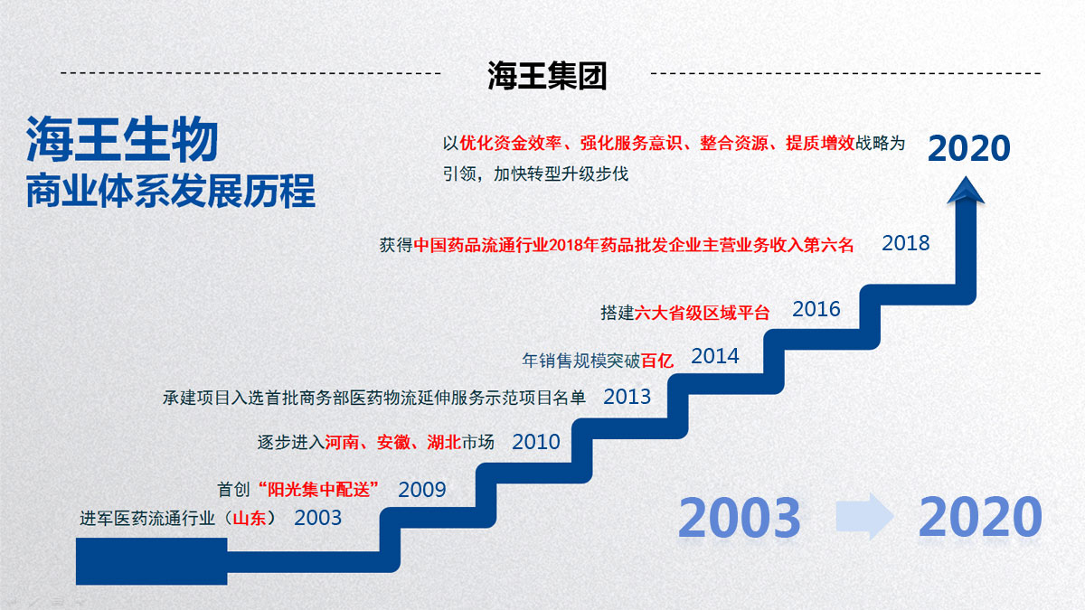 發(fā)展目標(biāo) ——《健康中國2030規(guī)劃綱要》已正式頒布,健康產(chǎn)業(yè)迎來重大戰(zhàn)略發(fā)展機(jī)遇。海王集團(tuán)將乘勢而為,專注醫(yī)藥健康產(chǎn)業(yè),堅(jiān)持技術(shù)創(chuàng)新和商業(yè)模式創(chuàng)新并重,深化創(chuàng)新,苦練內(nèi)功,力爭早日實(shí)現(xiàn)年銷售規(guī)模超過2000億發(fā)展目標(biāo),進(jìn)入世界500強(qiáng)。